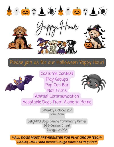 October 25th 3p-5p we will be at Delightful Dogs training and more